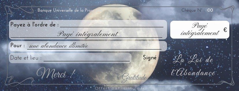 Remerciez l’univers et rangez votre chèque jusqu’à la prochaine nouvelle lune ( il sera brûlé pour la création d'un nouveau chèque)